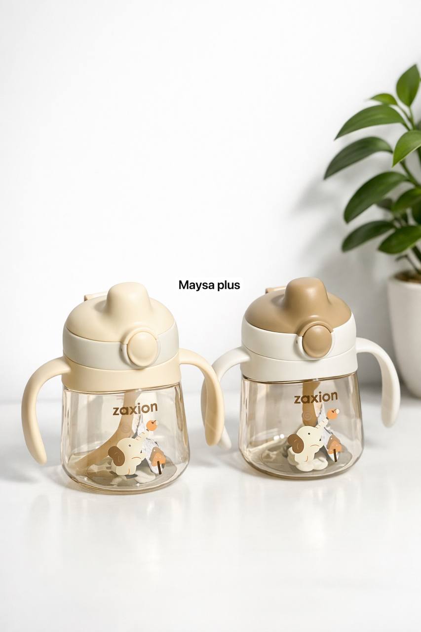 لیوان آموزشی آبخوری نی دار دسته دار جدید Zaxion طرح هی اور شی سیسمونی مانی نی