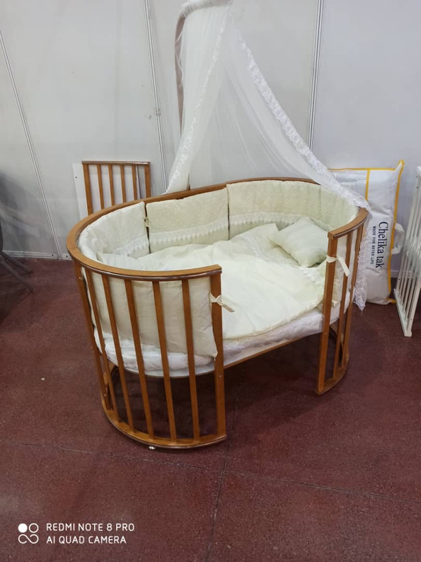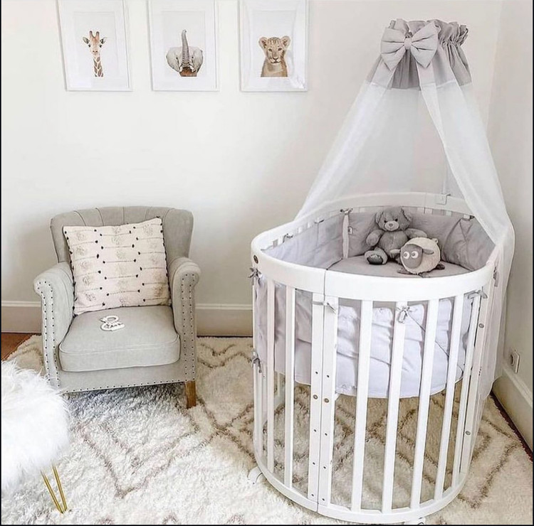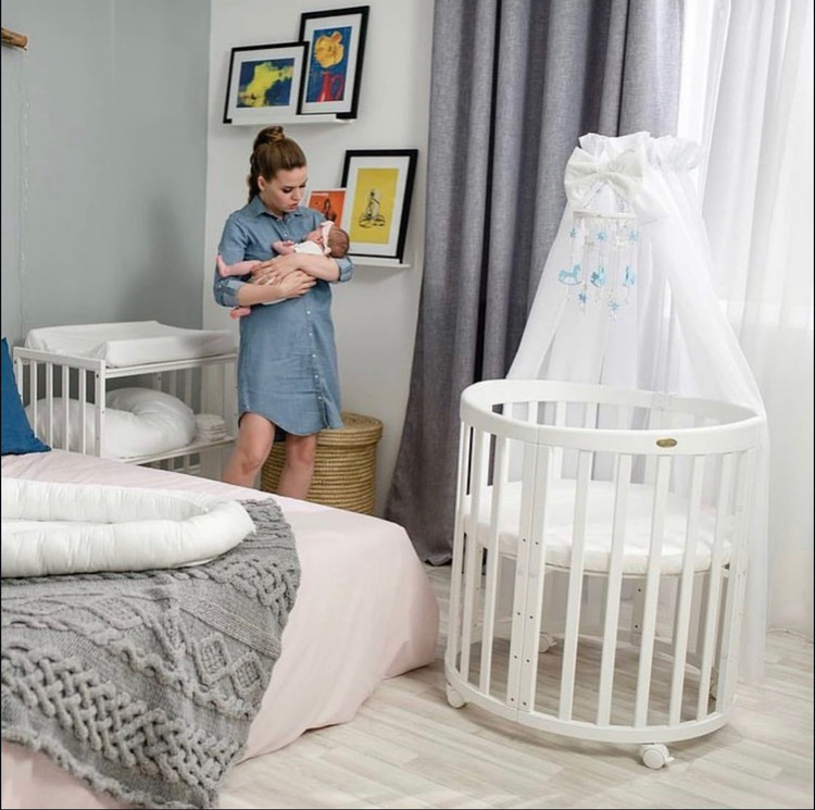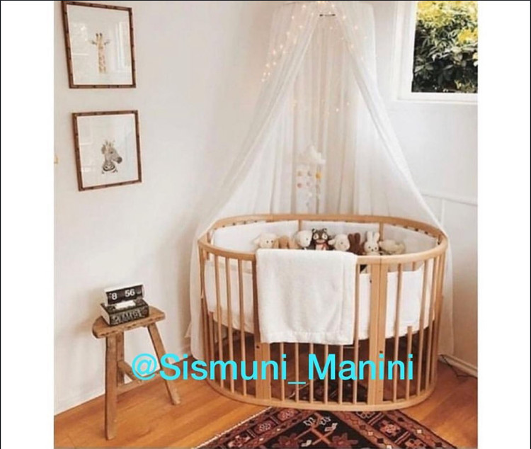 • تخت گرد: این تخت با قطر ۸۰ سانتیمتر به یک تخت گرد زیبا تبدیل میشود که برای نوزادان تا ۱ سالگی مناسب است. این حالت با طراحی دنج و مینیمال خود، فضای کمتری اشغال میکند و برای اتاقهای کوچک یا استفاده در کنار تخت والدین بسیار کاربردی است. طراحی گرد آن، حس امنیت بیشتری به نوزاد میدهد و جلوهای متفاوت به سیسمونی شما میبخشد.