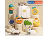 تعداد 8 تکه: شامل حلقههای رنگی، جغجغه، دندانگیر، اسب و اسباببازیهای صدادار.