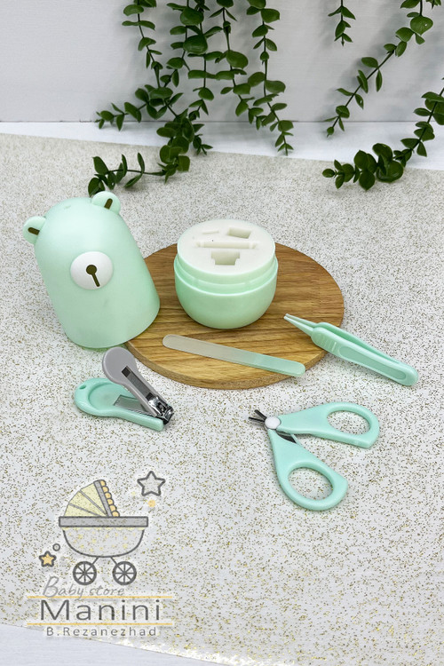 ست ناخن گیر و قیچی نوزاد طرح خرس سبز - سیسمونی مانی نی