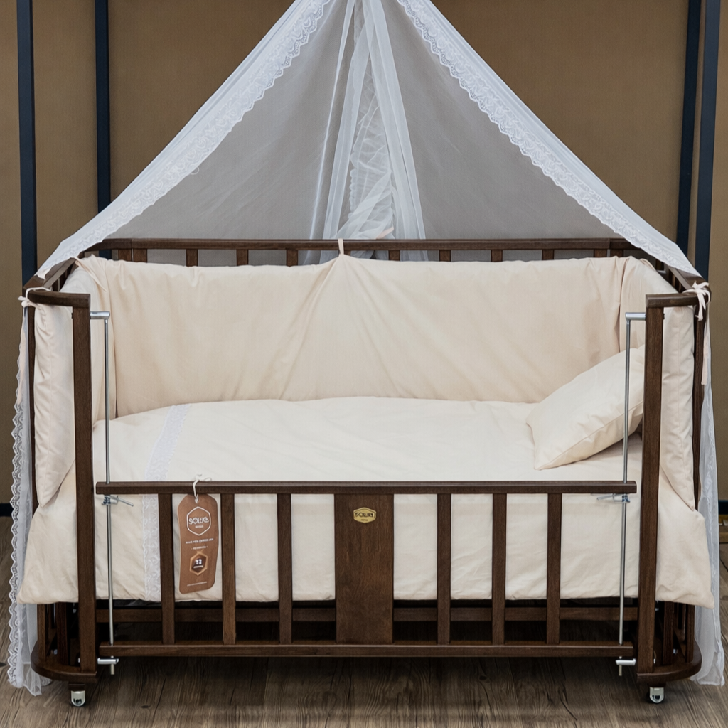 - رنگبندی ۵ رنگ بدنه فندقی، کرم، عسلی، سفید، رنگ چوب – هماهنگ با دکور اتاق نوزاد و سلیقههای مختلف مادران.