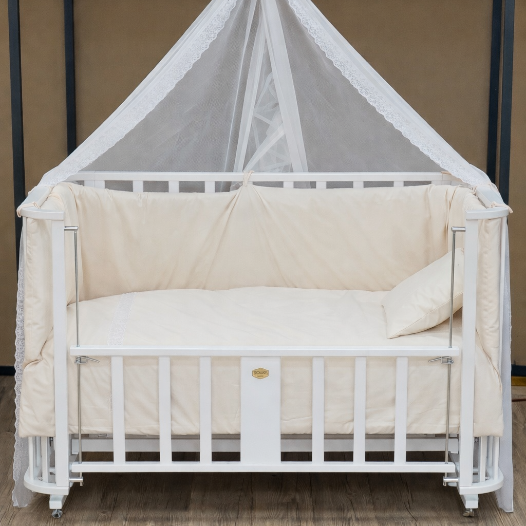 - رنگبندی ۵ رنگ بدنه فندقی، کرم، عسلی، سفید، رنگ چوب – هماهنگ با دکور اتاق نوزاد و سلیقههای مختلف مادران.