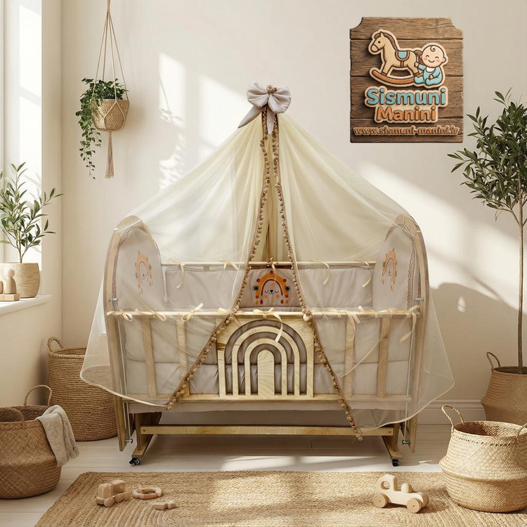 تخت و گهواره چند کاره کنار مادر چوبی طرح خاص سیسمونی مانی نی