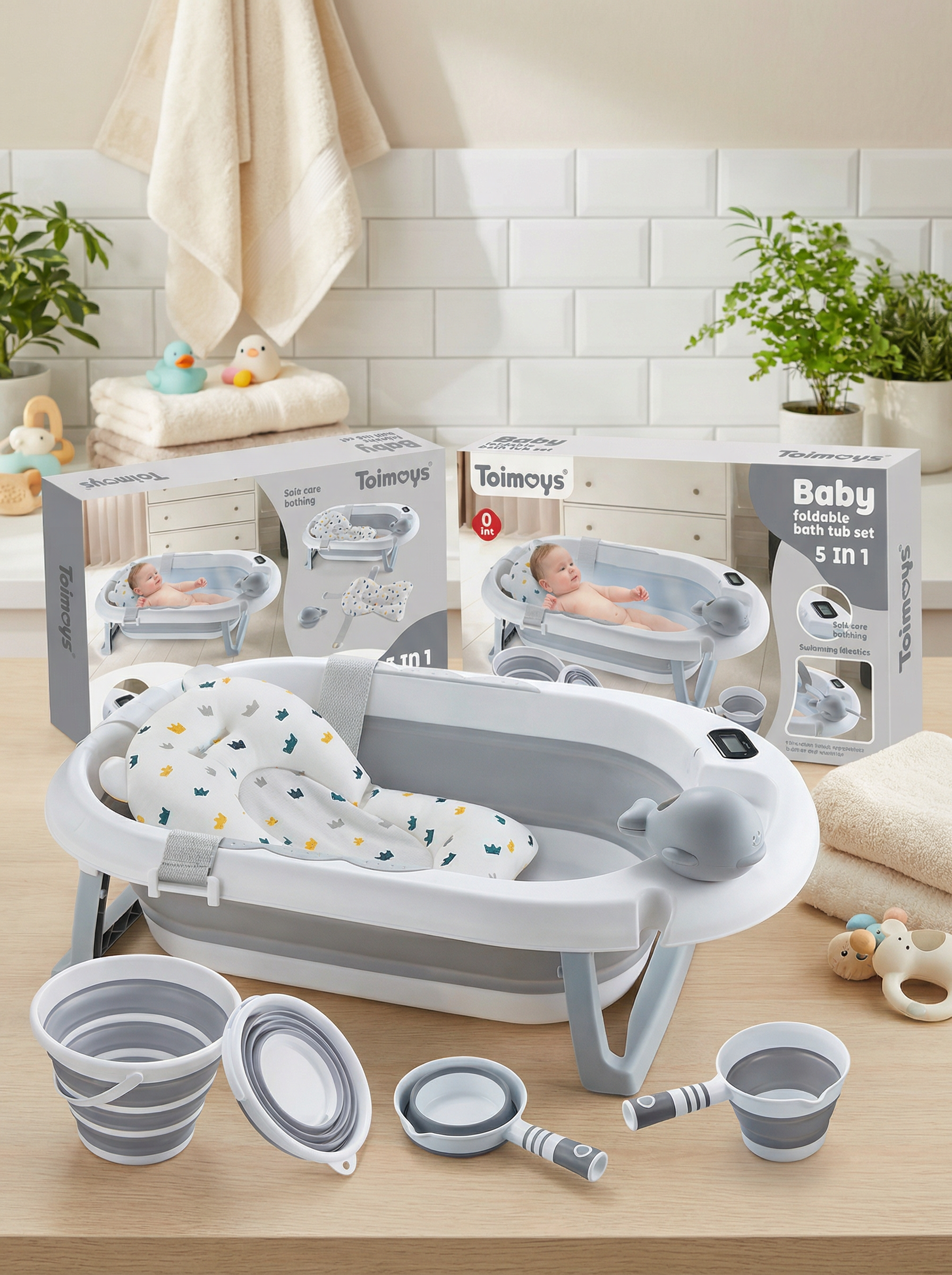 اگر به دنبال یک ست کامل حمام نوزادی، ایمن، تاشو و مجهز هستید که از بدو تولد قابل استفاده باشد و تمام لوازم ضروری را یکجا داشته باشد، ست وان حمام تویمویز (Toimoys) ۵ تکه یک انتخاب حرفهای و هوشمندانه است.