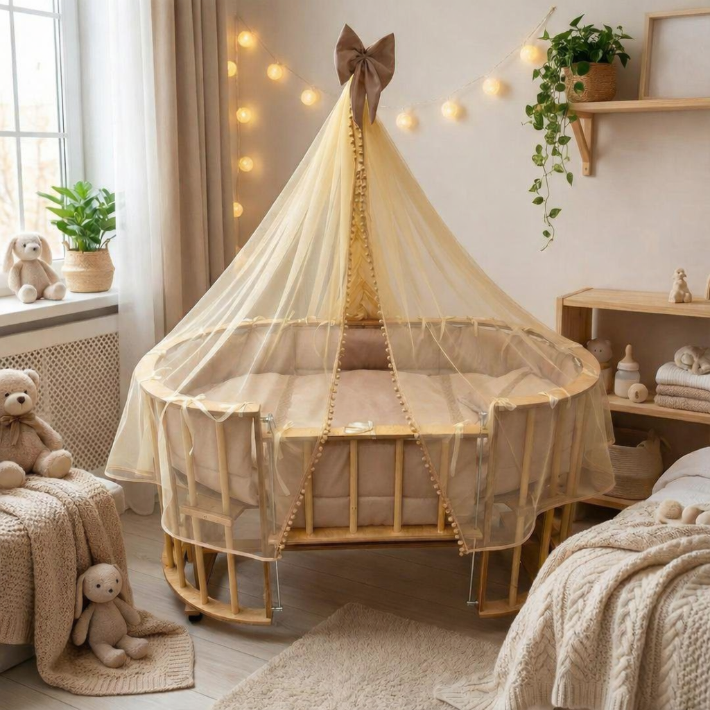 تخت کنار مادر بیضی 70×130 سانتیمتر انتخابی حرفهای، کاربردی و باکیفیت برای سیسمونی شماست 👶💛