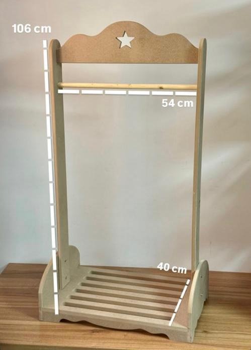 چوب لباسی چوبی ستارهای با ابعاد ۱۰۶×۵۴×۴۰ سانتیمتر، از چوب پلایوود درجه یک ضدآب روسی ساخته شده و دارای طراحی ستارهای بامزه، میله چوبی گرد و پایه پهن ایمن است. مناسب برای لباسهای نوزادی تا کودکی با ثبات بالا و ظاهر شیک. بدون مواد مضر و قابل حمل آسان. این چوبلباسی برای مادرانی که به دنبال چوبلباسی چوبی ایمن، زیبا و ماندگار هستند، گزینهای ایدهآل است.
