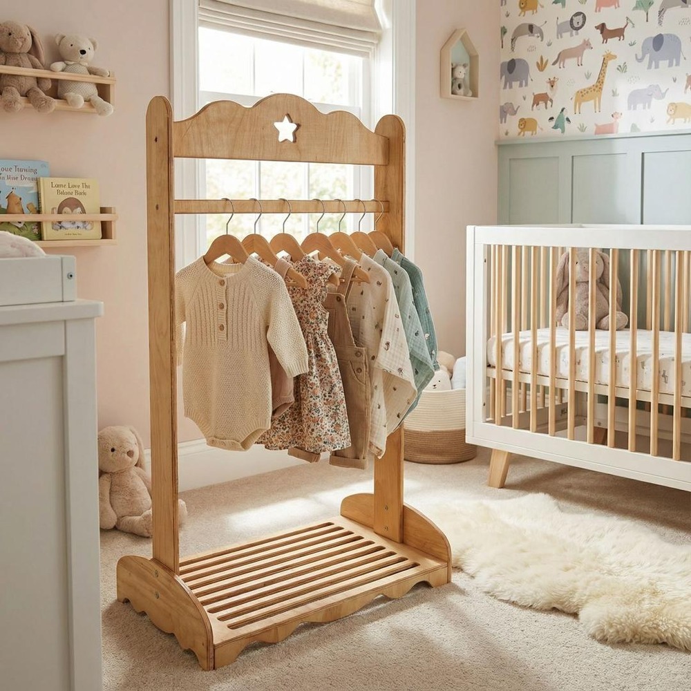 این چوبلباسی واقعاً یه شاهکاره! چوب پلایوود روسیش انقدر محکمه که با کلی لباس سنگین هم واژگون نمیشه. طراحی ستارهایش خیلی کیوته و اتاق بچه رو قشنگ میکنه. میله گردش لباسها رو بدون چروک نگه میداره و پایه پهنش ثبات عالی داره. ارتفاع ۱۰۶ سانتیش دقیقاً مناسب مادره و راحت لباس آویزون میکنه. بعد از ماهها استفاده هنوز مثل روز اول تمیز و محکم مونده. خیلی از مادرها میگن این چوبلباسی رو برای بچه دوم و حتی هدیه به دوستان دوباره سفارش دادن. اگر دنبال یه چوبلباسی چوبی ایمن، شیک و ماندگار هستید، مدل ستارهای دقیقاً همون چیزیه که نیاز دارید!