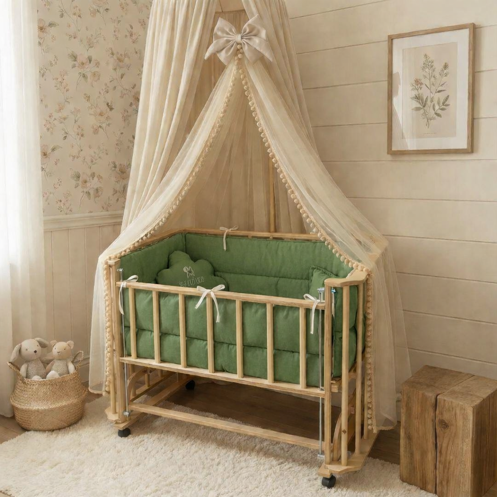 - ابعاد داخلی ۵۰×۹۰ سانتیمتر فضای خواب جادار – مناسب اکثر نوزادان تا ۱۸ ماهگی.