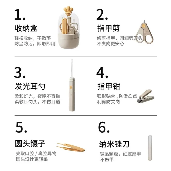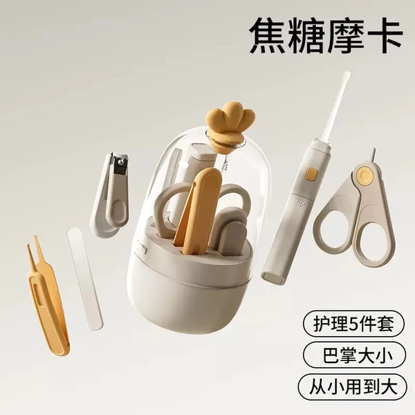 ست ناخنگیر کودک 5 تکه تاج دار همراه با قاب مناسب نوزاد دختر و پسر است. رنگ پایه آن کرمی و بدنه آن به صورت کاپ تخم مرغی شکل است. آن را با نام طرح تاج میشناسند. ارتفاع کاپ آن 11 سانتیمتر و اندازه قطر کاپ آن 5 سانتیمتر است. این پک دارای 6 تکه پنس، قیچی، سوهان و ناخن گیر،چراغ قوه و گیره است. از پلاستیک درجه یک بدون مواد مضر و BPA تولید شده است. همه این 6 تکه داخل محفظه شیک آن قابل نگهداری و حمل هستند. جنس تیغههای این ست از استیل ضدزنگ بوده و قابل شستشو هستند. از بوده و دچار زنگزدگی نخواهد شد. توجه به روتین بهداشتی نوزاد و کوچک امر بسیار مهمی است.