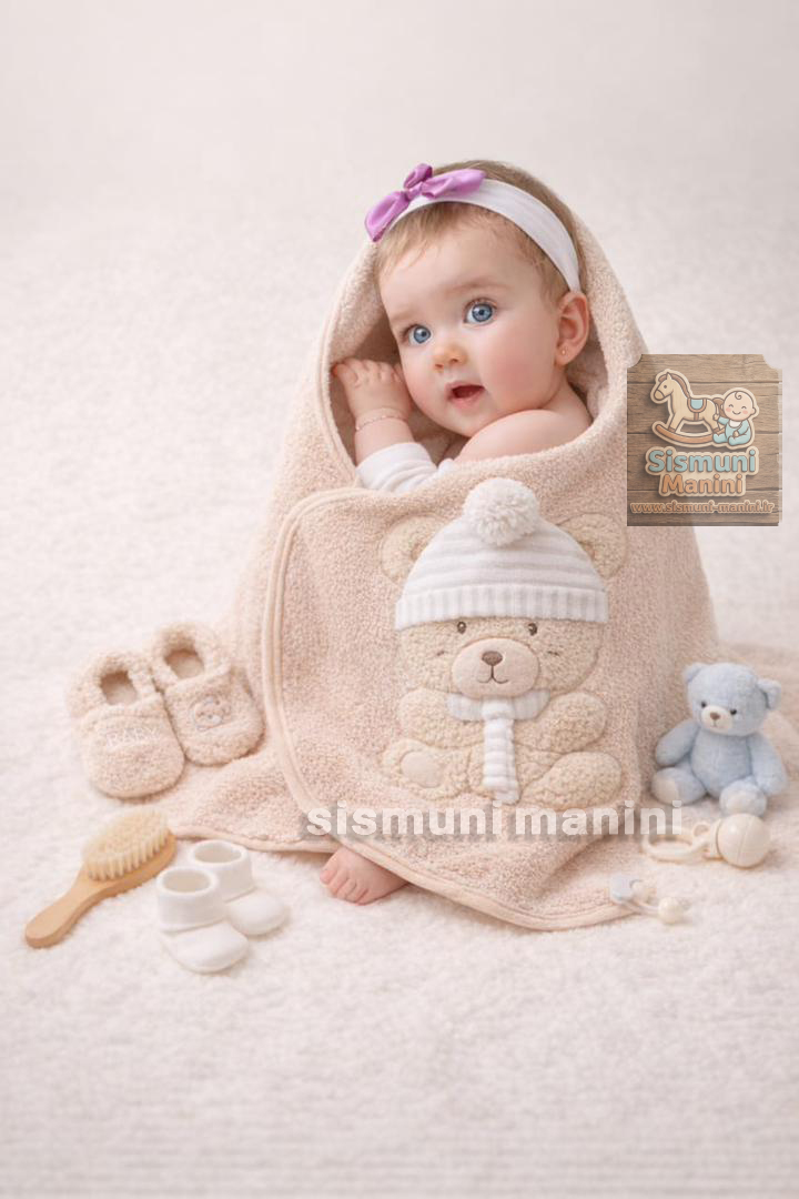 حوله دورپیچ کلاه دار با پاپوش نوزاد برکه با طرح خرس کلاه دار سیسمونی مانی نی، یکی از نرمترین و کیوتترین ستهای حمام نوزاد است که الان در سیسمونی مانی نی موجود شد. این حوله از پنبه ۱۰۰٪ ارگانیک با جذب آب بالا و نرمی بینظیر ساخته شدن. طرح حوله سهبعدی با کلاه پشمالو این ست رو به یه هدیه رویایی سیسمونی تبدیل کرده.