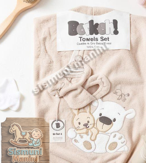 سرویس حوله پنج تیکه نوزاد برکه با طرح خرس کلاه دار سیسمونی مانی نی