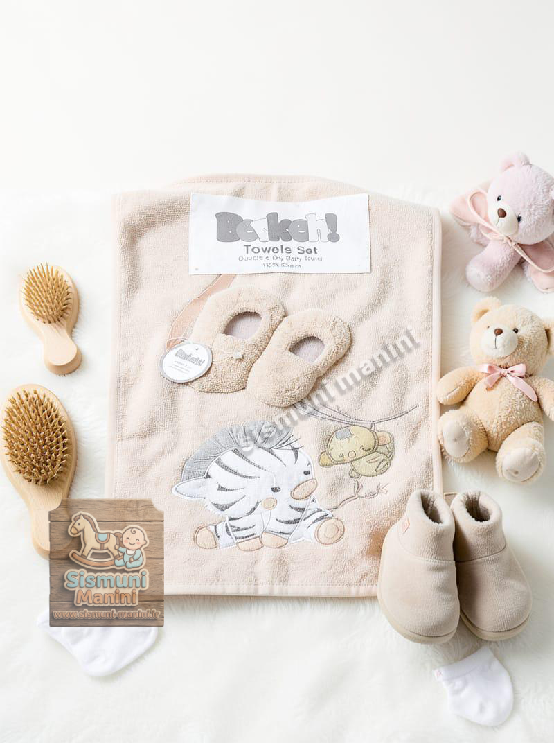 سرویس حوله پنج تیکه نوزاد برکه با طرح گورخر کلاه دار سیسمونی مانی نی