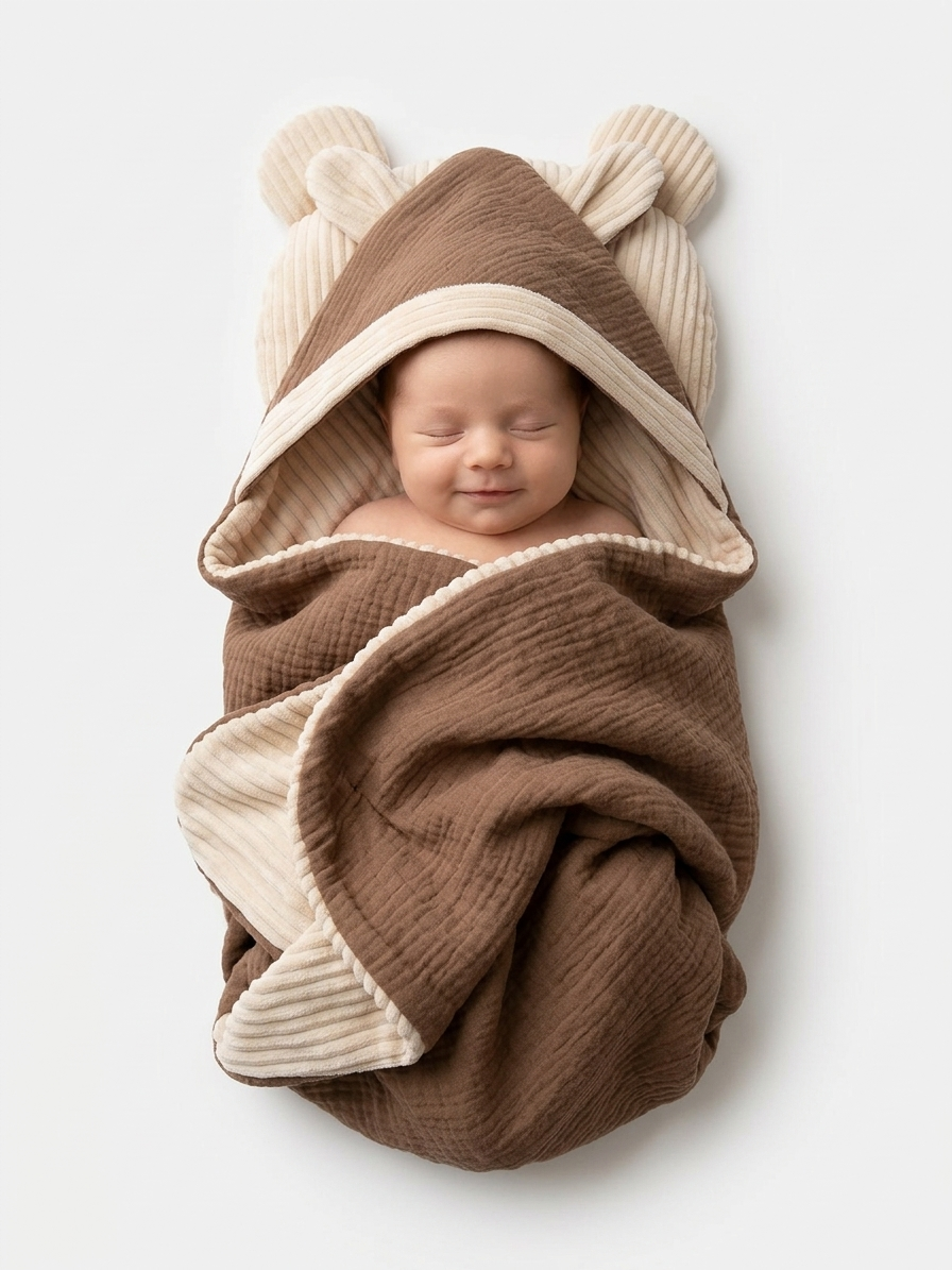 پتو کلاهدار(کلاه دار) نوزادی طرح خرس تدی برند ماماسی Mamasee سیسمونی مانی نی