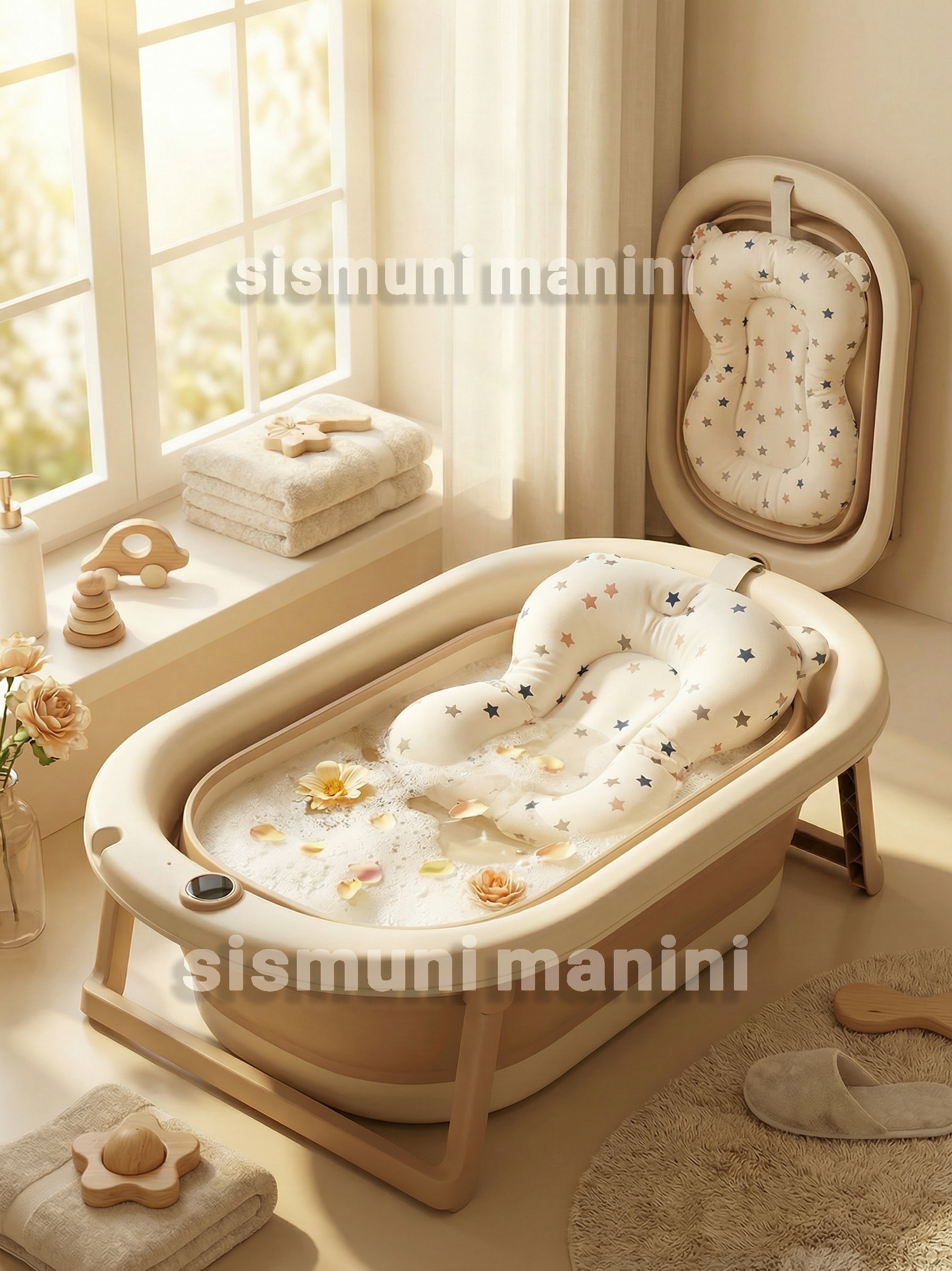 ناموجودست وان حمام توی مویز (TOIMOYS) 5 تکه (با آسانشور پفکی و کلاه حمام) سیسمونی مانی نی