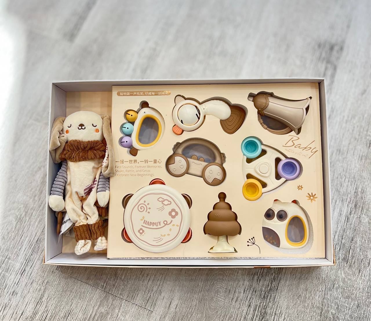 جغجغه سوسیسی جعبهای طرح خرس و خرگوش سیسمونی مانی نی