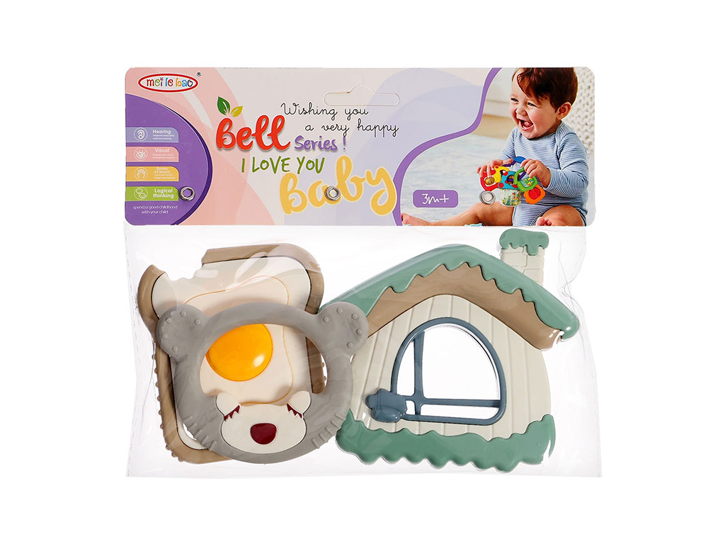 ست جغجغه و دندانگیر نوزادی ۳ عددی طرح کلبه سیسمونی مانی نی