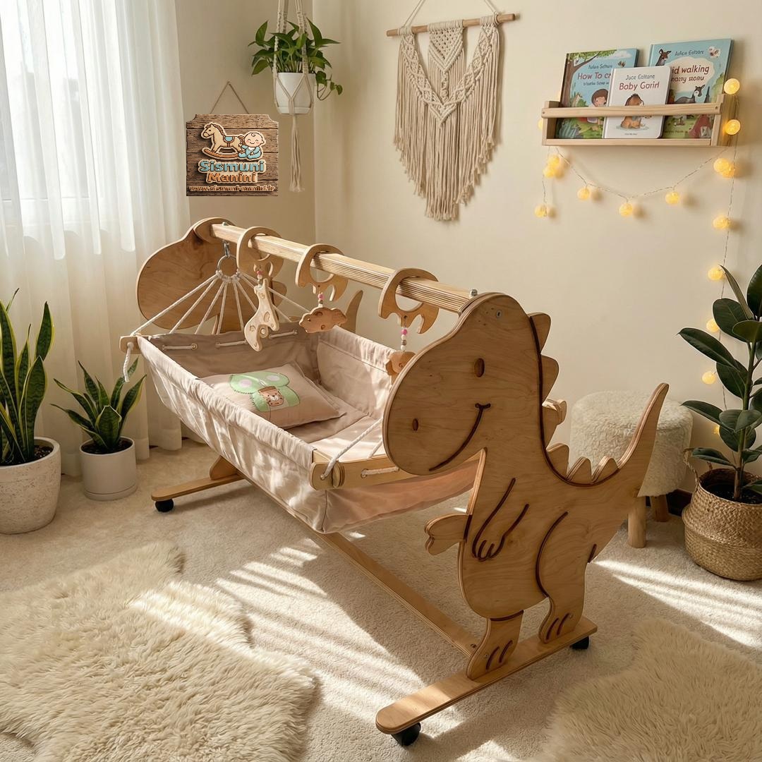 گهواره چوبی سنتی دایناسور چرخدار سیسمونی مانی نی