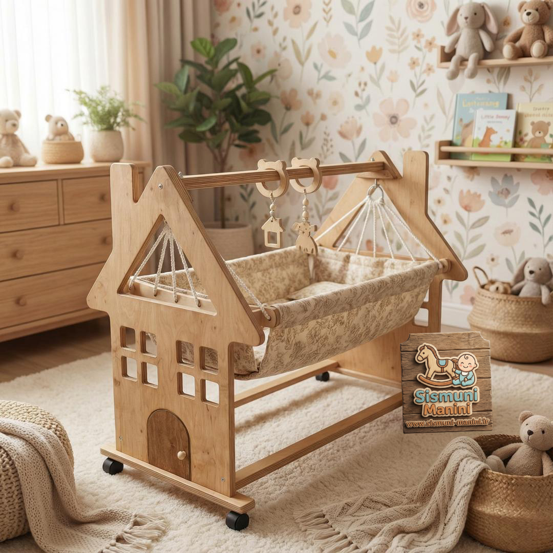 گهواره چوبی مدل خونه سیسمونی مانی نی