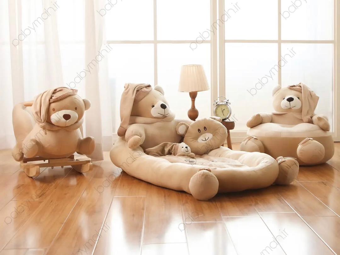 راکر مبلی کودک خرس تدی رنگ کرم سیسمونی مانی نی